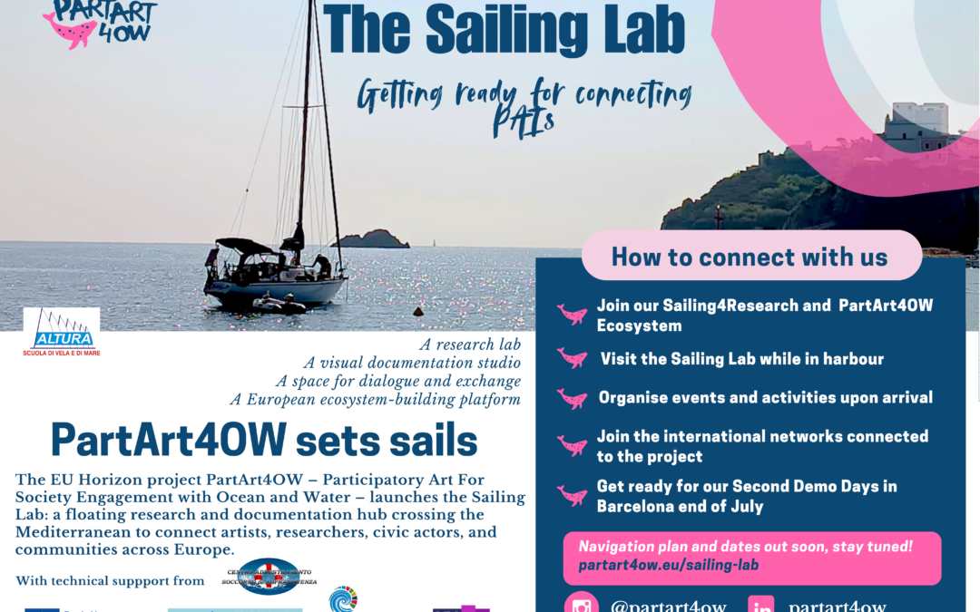 The PartArt4OW project – in which we are responsible for developing and managing the three open Open Calls to identify the PAIs, as well as for evaluating the impact assessment of the PAIs and of the project as a whole – announced the launch of the PartArt4OW Sailing Lab. This initiative is a research and documentation sailing boat crossing the Mediterraneum in summer 2026 to connect artists, scientists, civic society actors, and local communities across Europe, strengthening participatory approaches to ocean and water sustainability.
